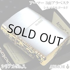 ZIPPO アーマー 限定 3面彫刻 アラベスク 鏡面プラチナ シルバー ジッポ ライター かっこいい シリアルNo刻印 コーナーリューター 重厚 メンズ [162-3-PT]