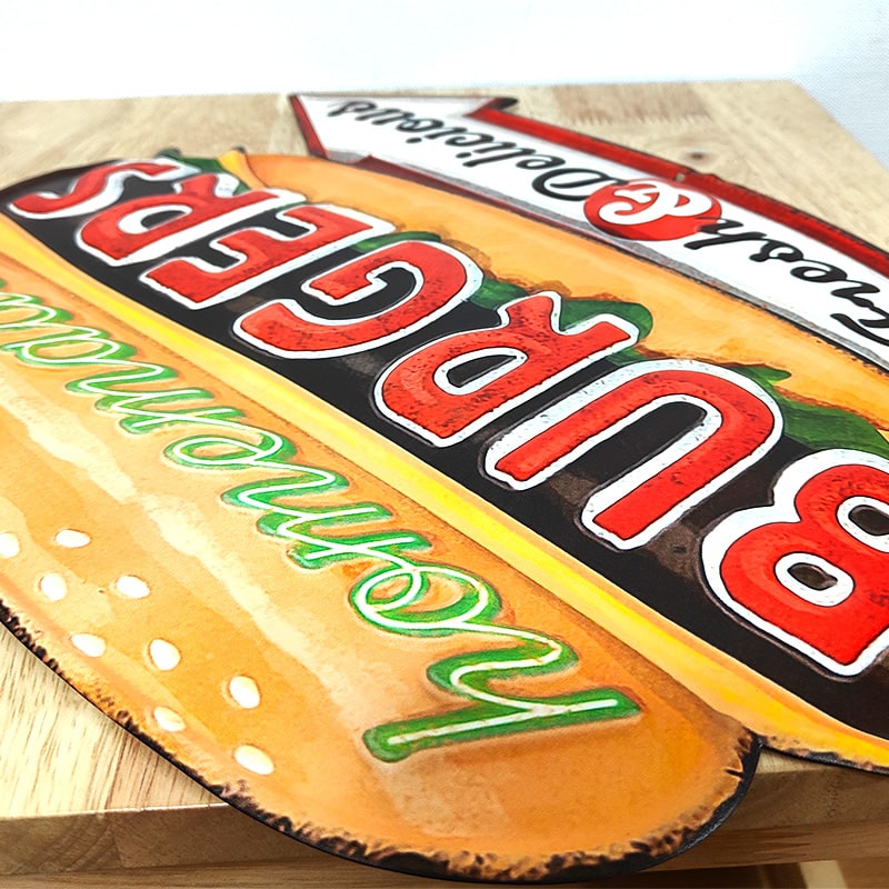 「ヴィンテージ風”BURGERS"壁掛け看板」
