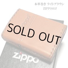 ZIPPO 革巻き ジッポ ライター おしゃれ ライトブラウン ロゴデザイン レザー キャメル シンプル 本牛革 薄茶 かっこいい 皮 メンズ 渋い ギフト プレゼント [LB-5]