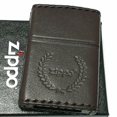 ZIPPO ライター 革巻き ダークブラウン ジッポ ロゴデザイン レザー シンプル 本牛革 濃茶 かっこいい 皮 メンズ 渋い ギフト プレゼント [DB-7]