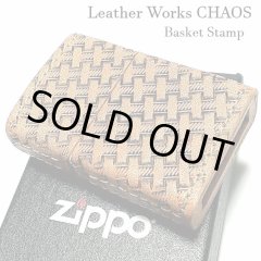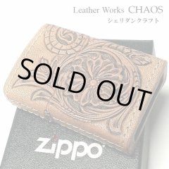ZIPPO ライター 革巻き ジッポ おしゃれ カオス サンマークスタッズ 真鍮 Leather Works 牛本革 ハンドメイド 彫刻 ブランド かっこいい メンズ ギフト [CHAOS-sunmark]