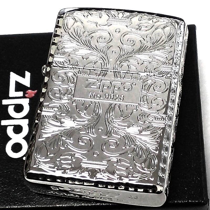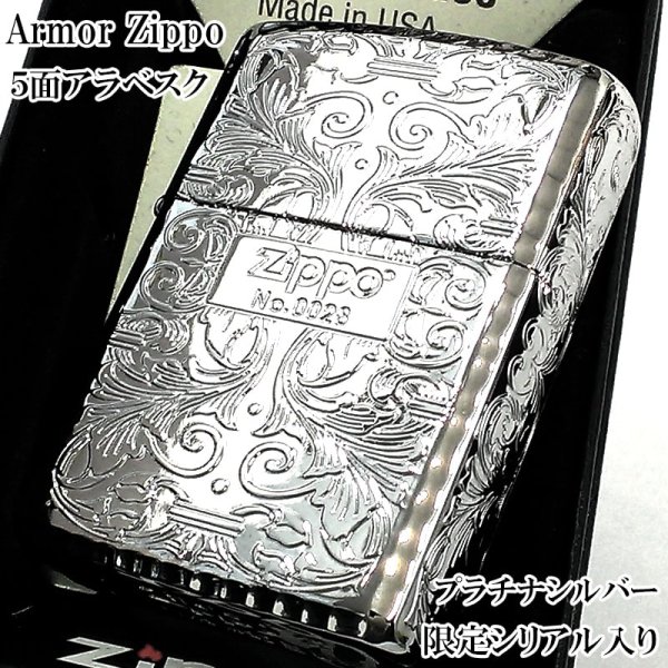 ZIPPO 限定 アーマー アラベスク 5面彫刻 鏡面プラチナシルバー ジッポ ライター シリアルナンバー入り 唐草 リーフ 両面コーナーリューター加工 銀 かっこいい 重厚 高級 美しい メンズ ギフト プレゼント [162PT-Z5KARART]