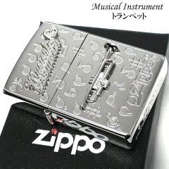 ZIPPO ライター 楽器 トランペット ジッポ かわいい シルバー 両面加工 おしゃれ ハート 音符 可愛い ホワイトニッケル 銀 メンズ レディース プレゼント ギフト [WNS-Trumpet]