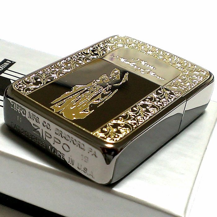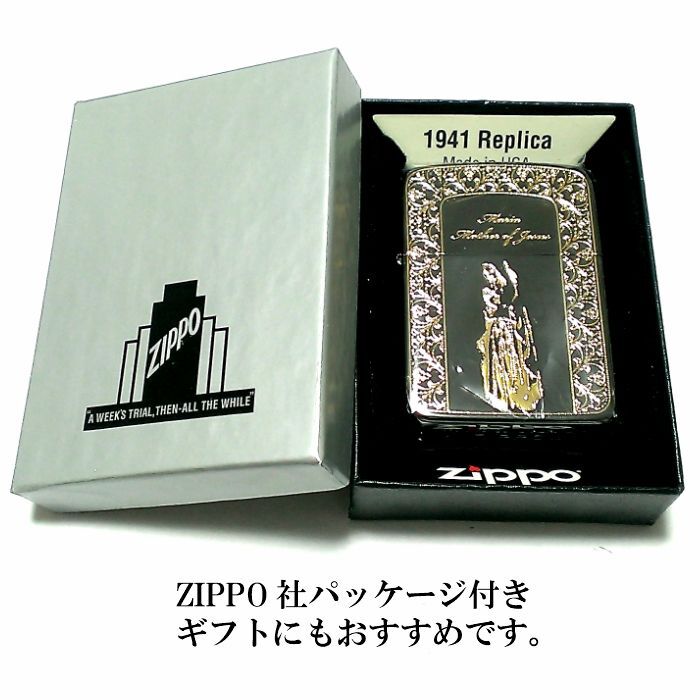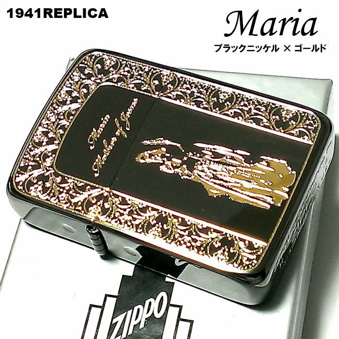 ZIPPO 1941 復刻レプリカ ジッポ ライター かっこいい マリア ブラックニッケル 黒金 おしゃれ 丸角 メンズ ギフト プレゼント [1941Maria-BN]