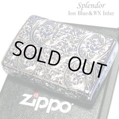 ZIPPO スプレンダー イオンブルー ジッポ ライター アラベスク模様 5面加工 彫刻 シルバー鍍金差し 青 かっこいい おしゃれ レディース メンズ ギフト プレゼント [Splendor-SV-BL]
