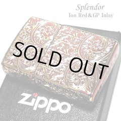 ZIPPO ライター スプレンダー イオンレッド ジッポ アラベスク模様 5面加工 金タンク 彫刻 ゴールド鍍金差し 赤 かっこいい おしゃれ レディース メンズ ギフト プレゼント [Splendor-GD-RD]
