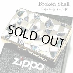 ZIPPO ライター ジッポ シェル シルバー ピンクゴールドメッキ 鏡面 天然貝象嵌 シェルイン 両面加工 おしゃれ かっこいい メンズ レディース ギフト 女性 プレゼント [Broken Shell SP]