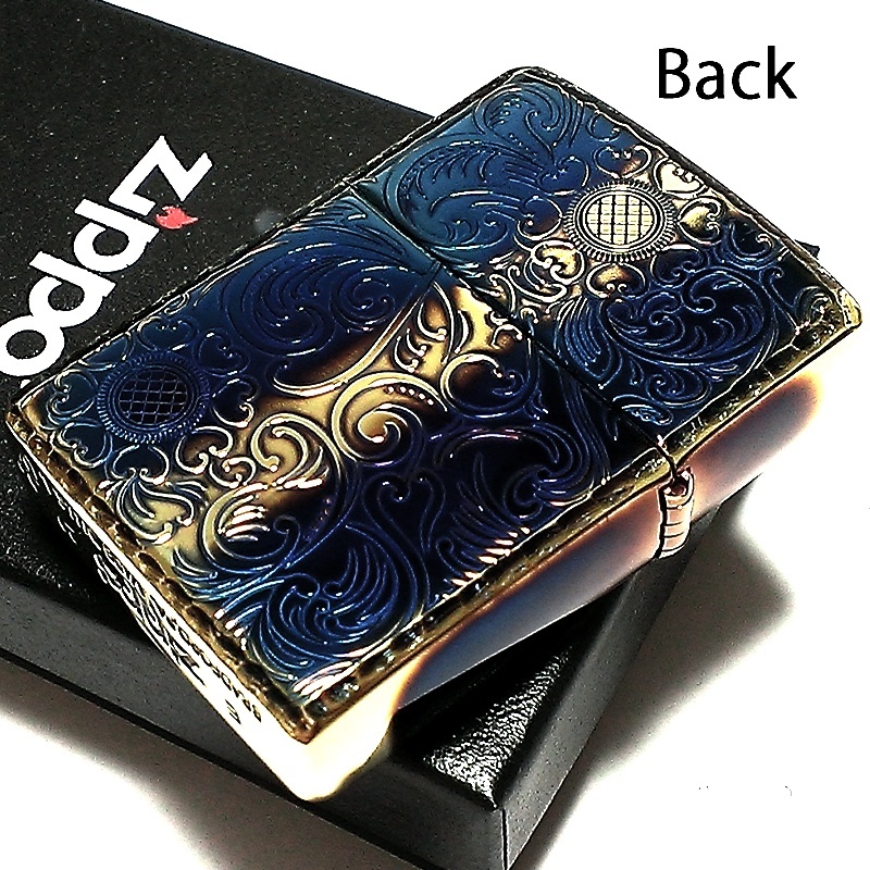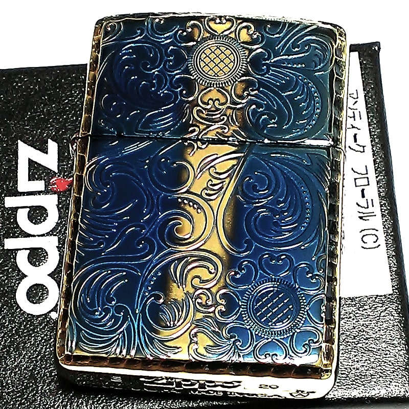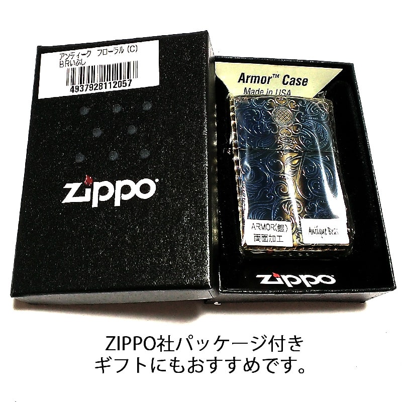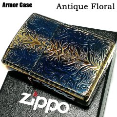 ZIPPO アーマー ジッポ アンティークフローラル 両面彫刻加工 ゴールド 古美燻し仕上げ 重厚モデル 花 銀 ライター かっこいい メンズ レディース プレゼント ギフト [AntiqueFloral-C]