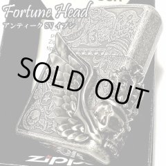 ZIPPOライター かっこいい フォーチュンヘッド ジッポ 銀イブシ スカル 大型3面メタル ライター Fortune head ふくろう ドクロ おしゃれ メンズ ギフト プレゼント [skullwing-SV]