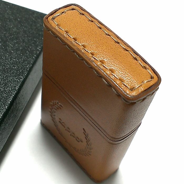 ZIPPO 革巻き ジッポ ライター ライトブラウン ロゴデザイン レザー キャメル シンプル 本牛革 薄茶 かっこいい 皮 メンズ 渋い ギフト プレゼント