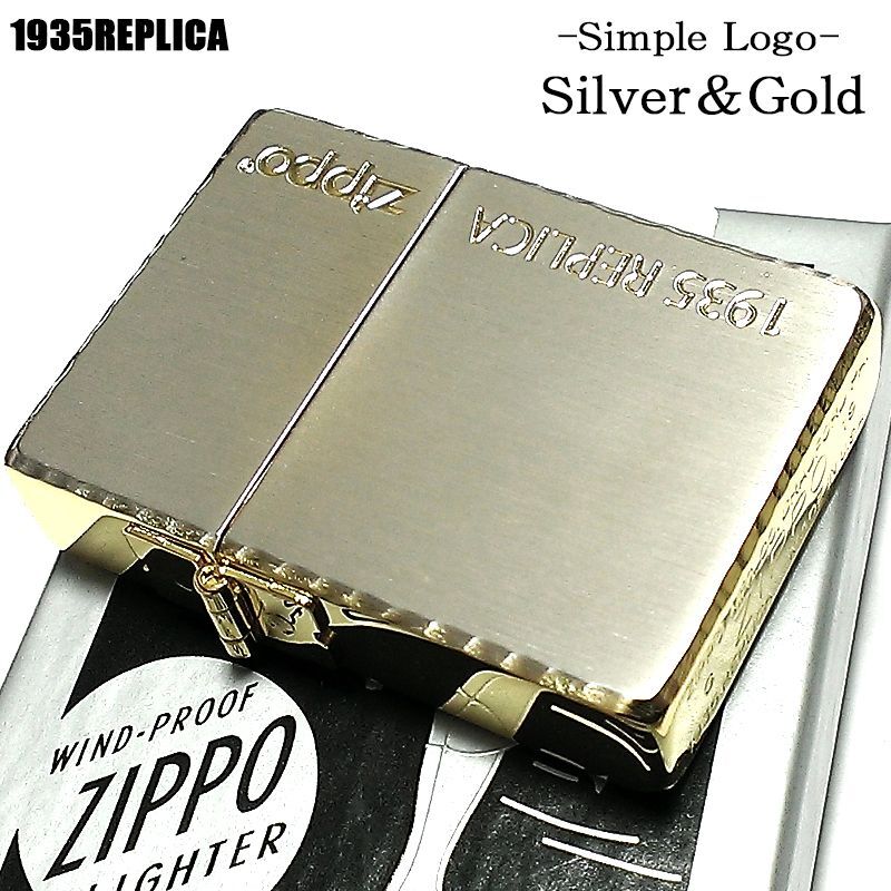 ZIPPO 1935 復刻レプリカ サイドゴールド ロゴデザイン ジッポライター かっこいい リューターカット 角型 金銀 高級 おしゃれ ギフト プレゼント