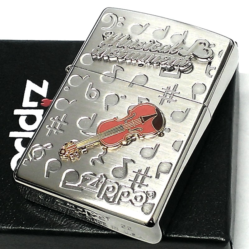 ZIPPO ライター バイオリンメタル 楽器 ジッポ かわいい シルバー 両面加工 ハート 音符 可愛い ホワイトニッケル 銀 おしゃれ メンズ レディース プレゼント ギフト